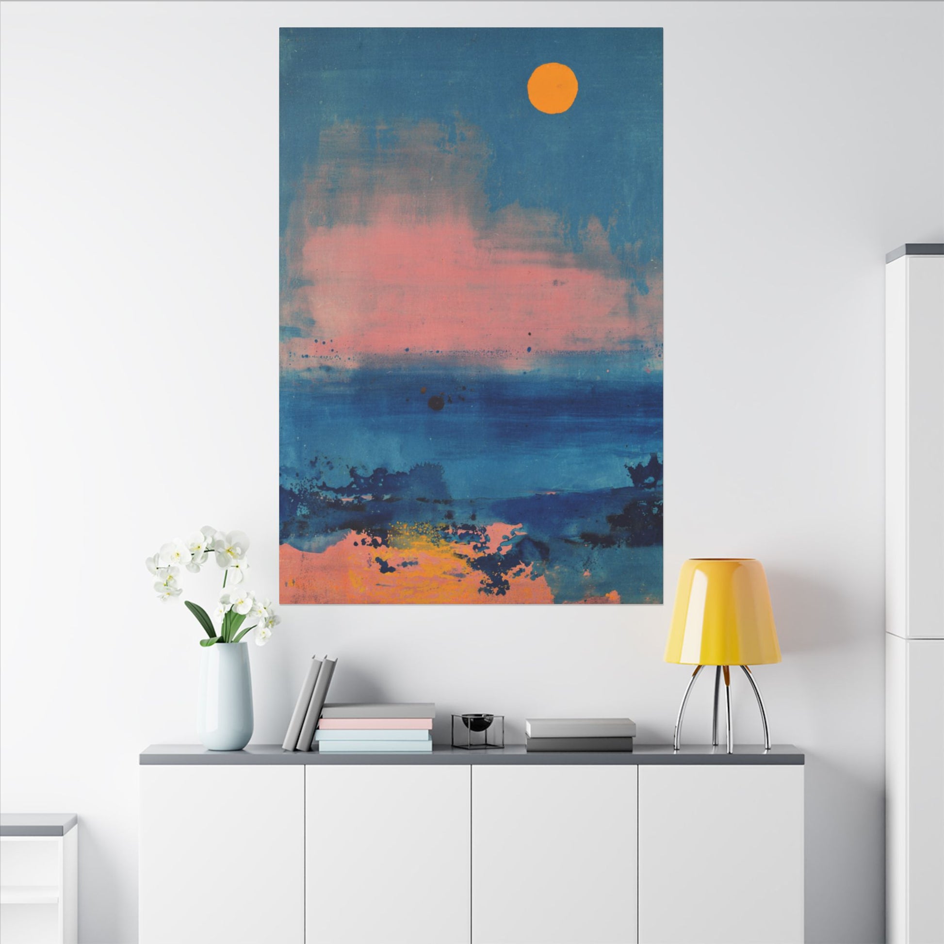Transform your space with this vibrant matte canvas print that captures the essence of a serene sunset over the ocean. The deep blues and soft pinks of the artwork evoke feelings of calm and tranquility, making it an ideal addition to any room. Perfect for art lovers, home decorators, or anyone looking to add a pop of color to their walls, this canvas brings a modern touch to your decor. Perfect for housewarmings, birthdays, or simply as a treat for yourself, this piece understands the beauty of nature and invites it into your home. Whether hung in a living room, bedroom, or office, this canvas serves as a daily reminder to unwind and appreciate life’s moments.